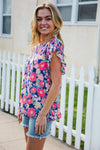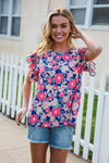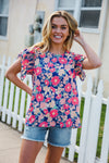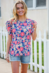 Vacay Ready Blue & Fuchsia Floral Smocked Ruffle Sleeve Top from Broadway & Arthur Boutique in Enid, Oklahoma.