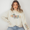 Carry a message of faith and encouragement everywhere you go with this cozy graphic sweatshirt. Featuring the bold reminder “He Has a Plan” across the chest and “You Have a Purpose” on the sleeve, it’s the perfect blend of comfort and inspiration.