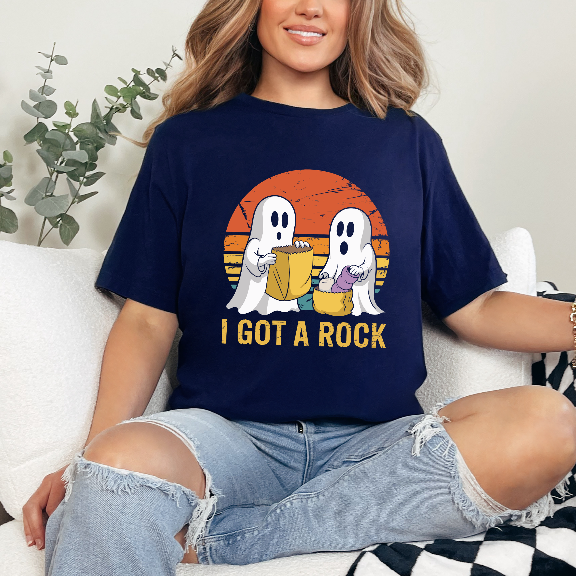 Get ready for spooky season with our I Got a Rock Halloween graphic tee! Featuring two adorable ghosts trick-or-treating with a retro sunset backdrop, this fun design is perfect for anyone who loves playful Halloween vibes. Made with soft, breathable fabric for all-day comfort, this tee is ideal for pumpkin patches, parties, or cozy nights in.