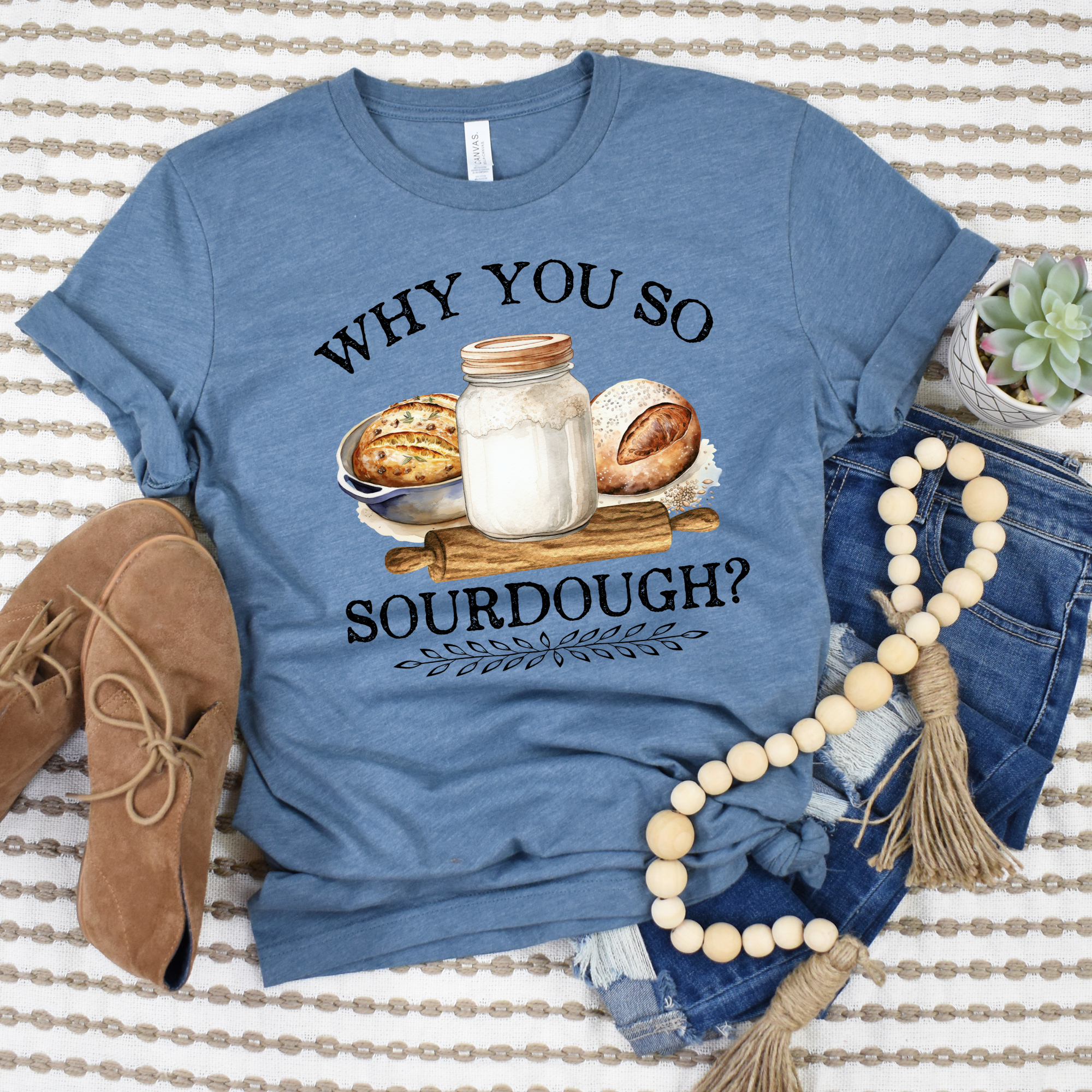 Why You So Sourdough Graphic Tee from Broadway & Arthur Boutique in Enid, Oklahoma.