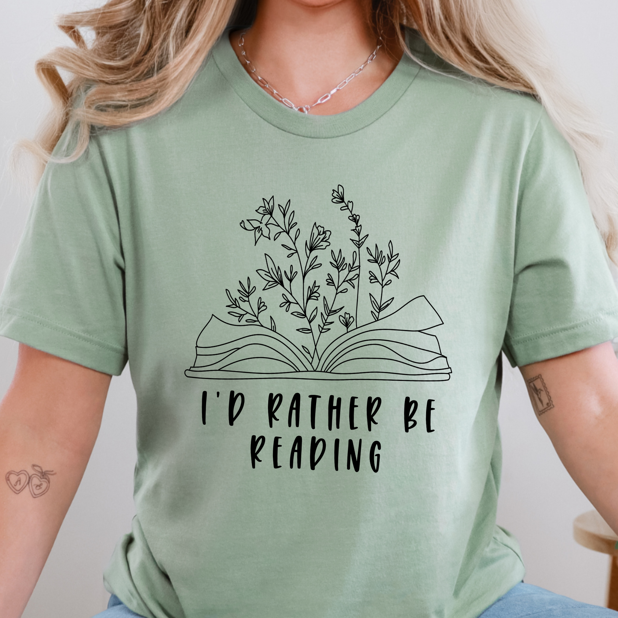For the book lovers who would always choose one more chapter 📚 This charming tee features a delicate open-book design with floral details and the phrase “I’d Rather Be Reading” — perfect for cozy days, bookstore trips, and quiet reading time.