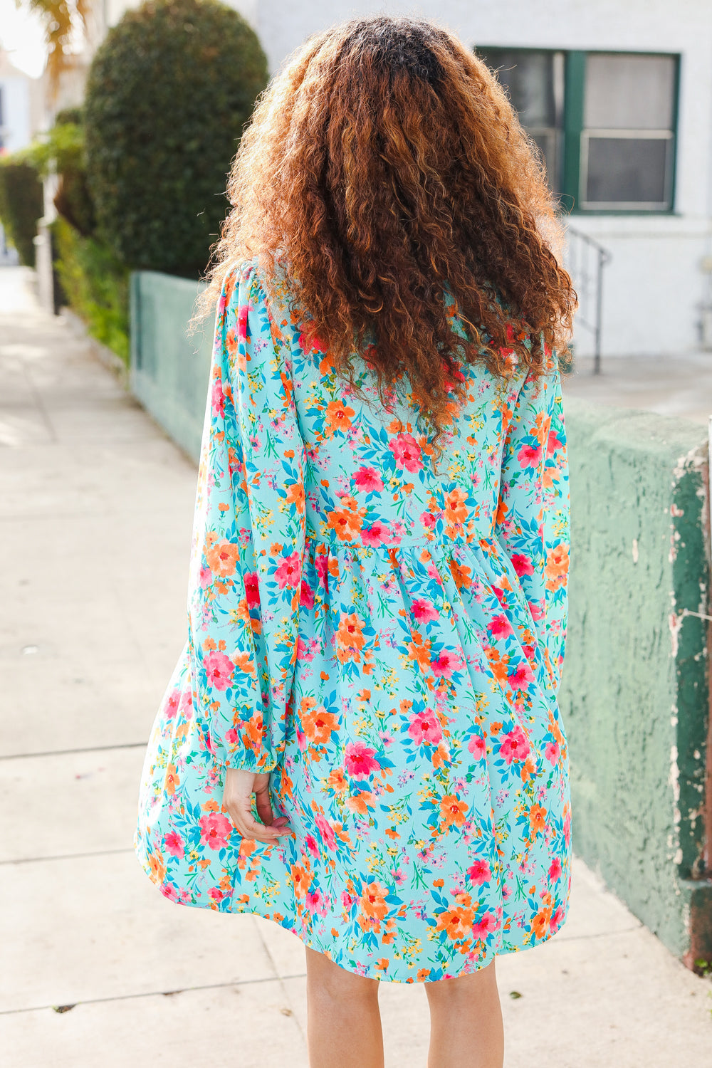 Feeling Femme Aqua Floral Ribbon Bow Tie Babydoll Dress from Broadway & Arthur Boutique.