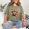 Add some farmhouse charm to your fall wardrobe with this adorable Highland cow graphic tee. Featuring heart-shaped sunglasses, pumpkins, and autumn florals, it’s the perfect cozy yet playful look for the season. Made with soft, breathable fabric for all-day comfort.