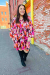 Add a pop of color and a touch of femininity to your fall wardrobe with this stunning floral print dress. With side pockets, a tie neck and pintuck details, this satin dress is sure to be a head turner.