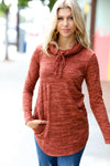 Rust Marled Cowl Neck Pocketed Top from Broadway & Arthur Boutique.