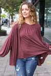 Casual Chic Wine V Neck Yoke Modal Knit Oversized Top from Broadway & Arthur Boutique.