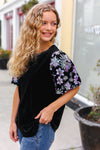 Feeling Glamorous Black Floral Sequin Puff Sleeve Velvet Top from Broadway & Arthur Boutique.