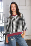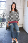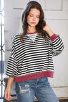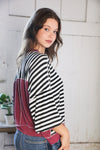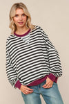 A Stripe Story Wine Crew Neck Pullover from Broadway & Arthur Boutique.
