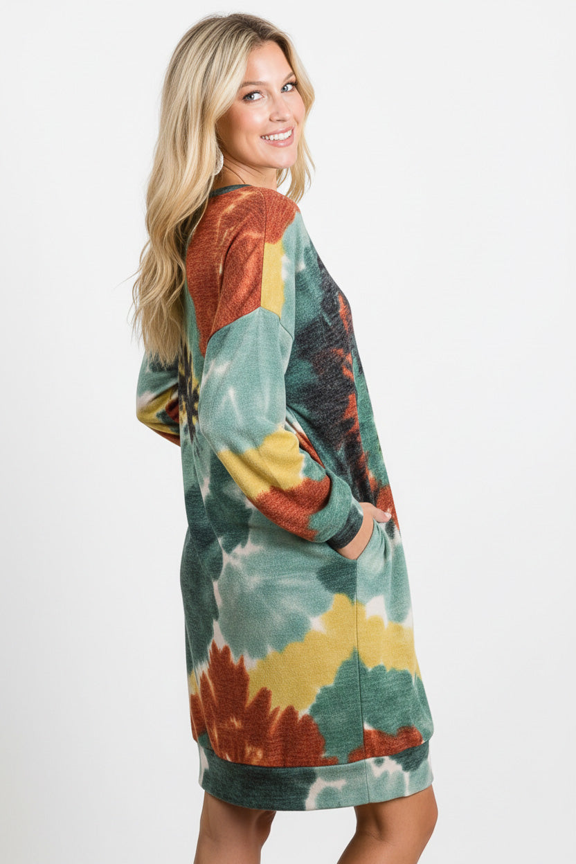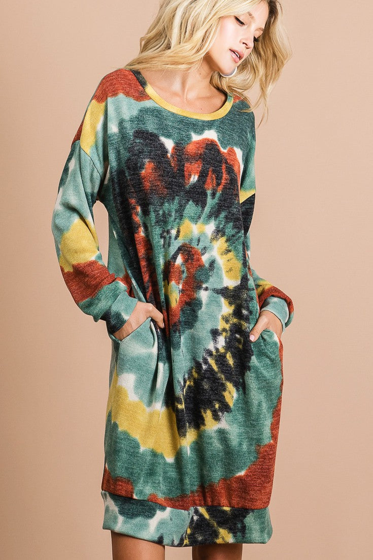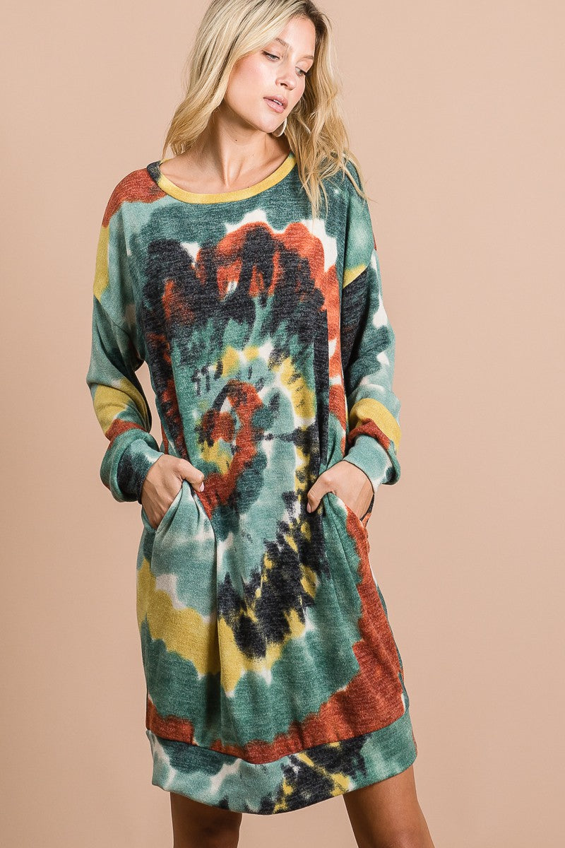 BiBi Tie Dye Print Knit Dress with Side Pocket from Broadway & Arthur Boutique.
