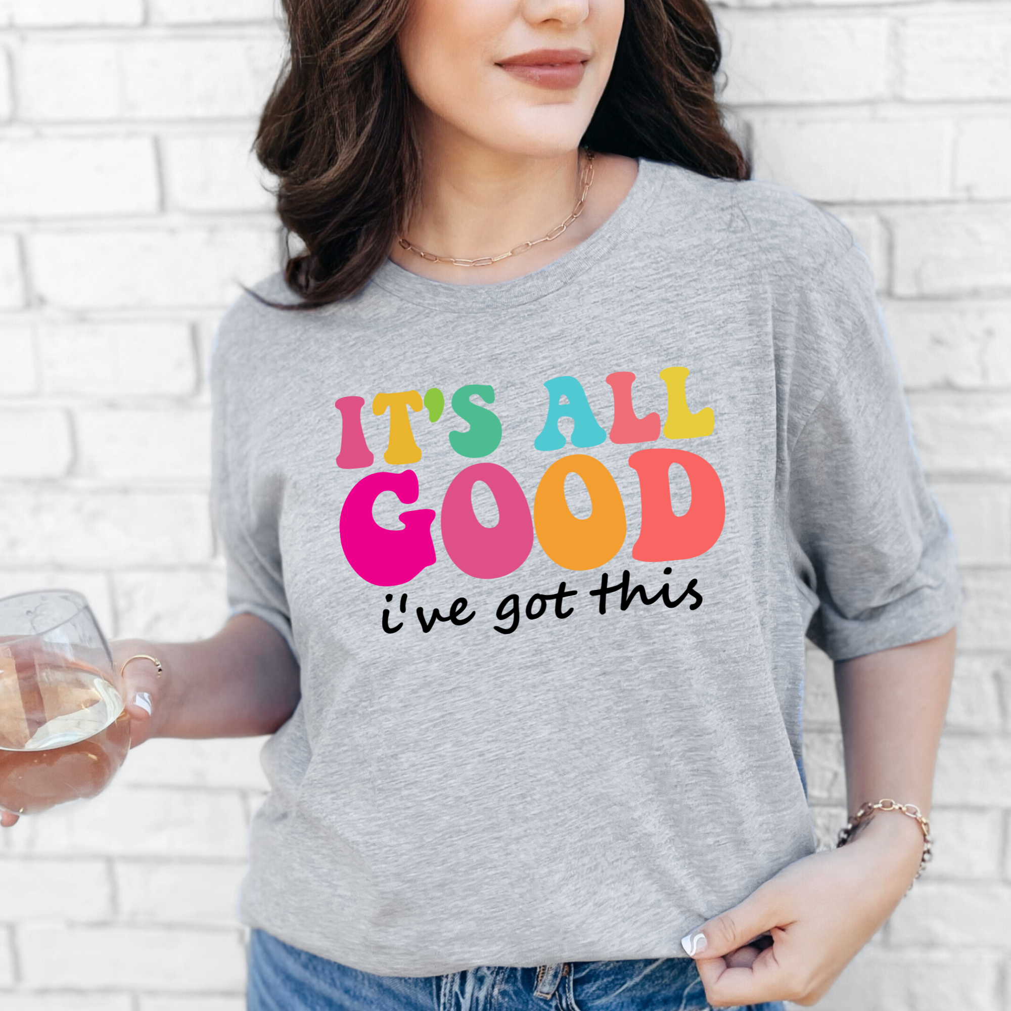 Bright, bold, and full of positive vibes ✨ This colorful “It’s All Good, I’ve Got This” design is the perfect everyday reminder to stay confident and keep going. With playful retro-inspired lettering and feel-good energy, it’s made to stand out.