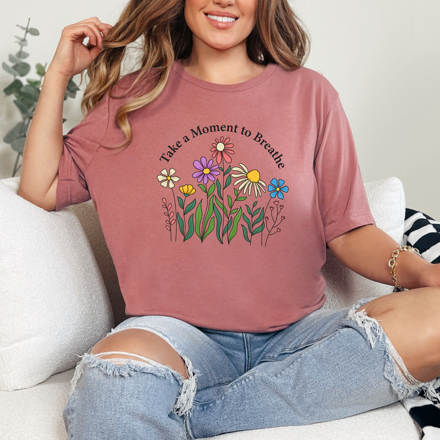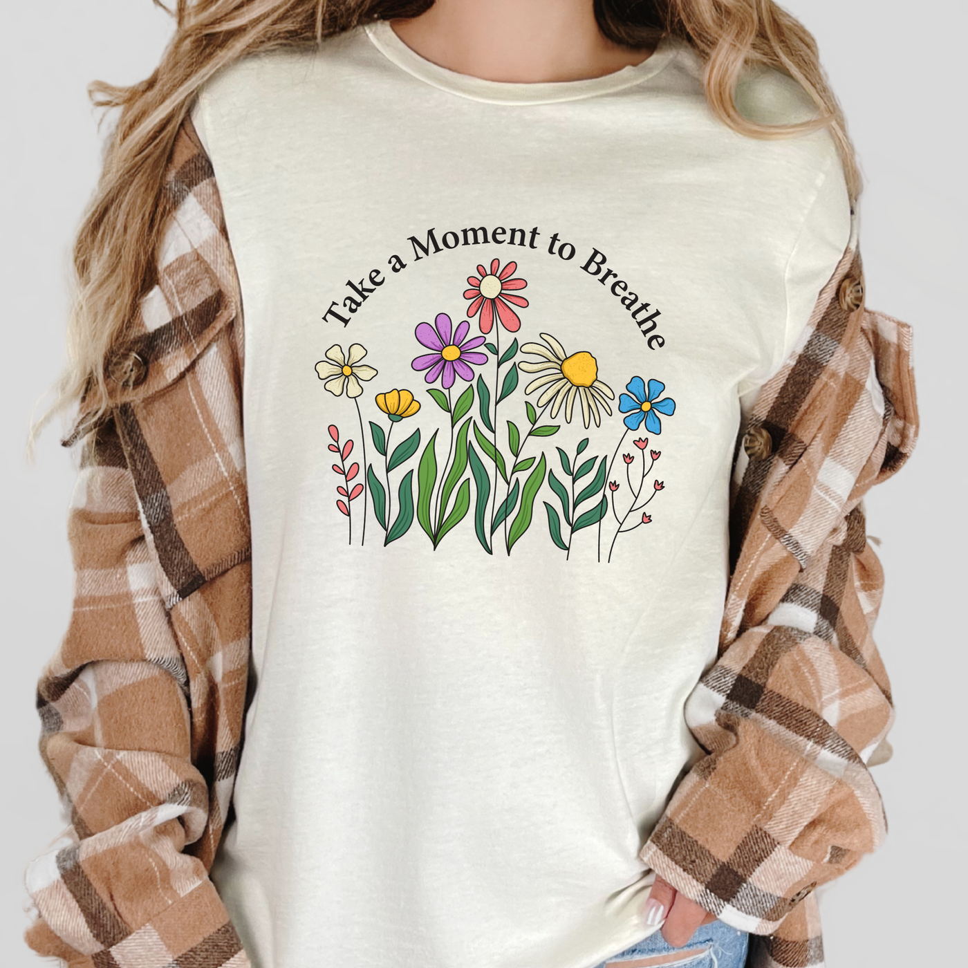 A gentle reminder we all need 🌸 This calming floral design features colorful hand-drawn wildflowers paired with the uplifting message, “Take a Moment to Breathe.”