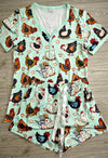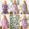 The softest, coziest pajamas are now available in a short sleeve + shorts set! Featuring a v-neck with faux buttons, pockets and elastic waistband with functional satin drawstring. Also available as capris!