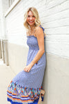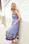 Follow Me Navy Boho Print Smocked Shoulder Tie Border Hem Dress from Broadway & Arthur Boutique.