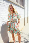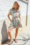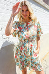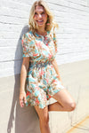Showcase your fun side with this stunning tropical print woven notched frill neck romper. Designed with side pockets, a smocked waist, short sleeves and a fit & flare style, look stunning in this flattering romper!