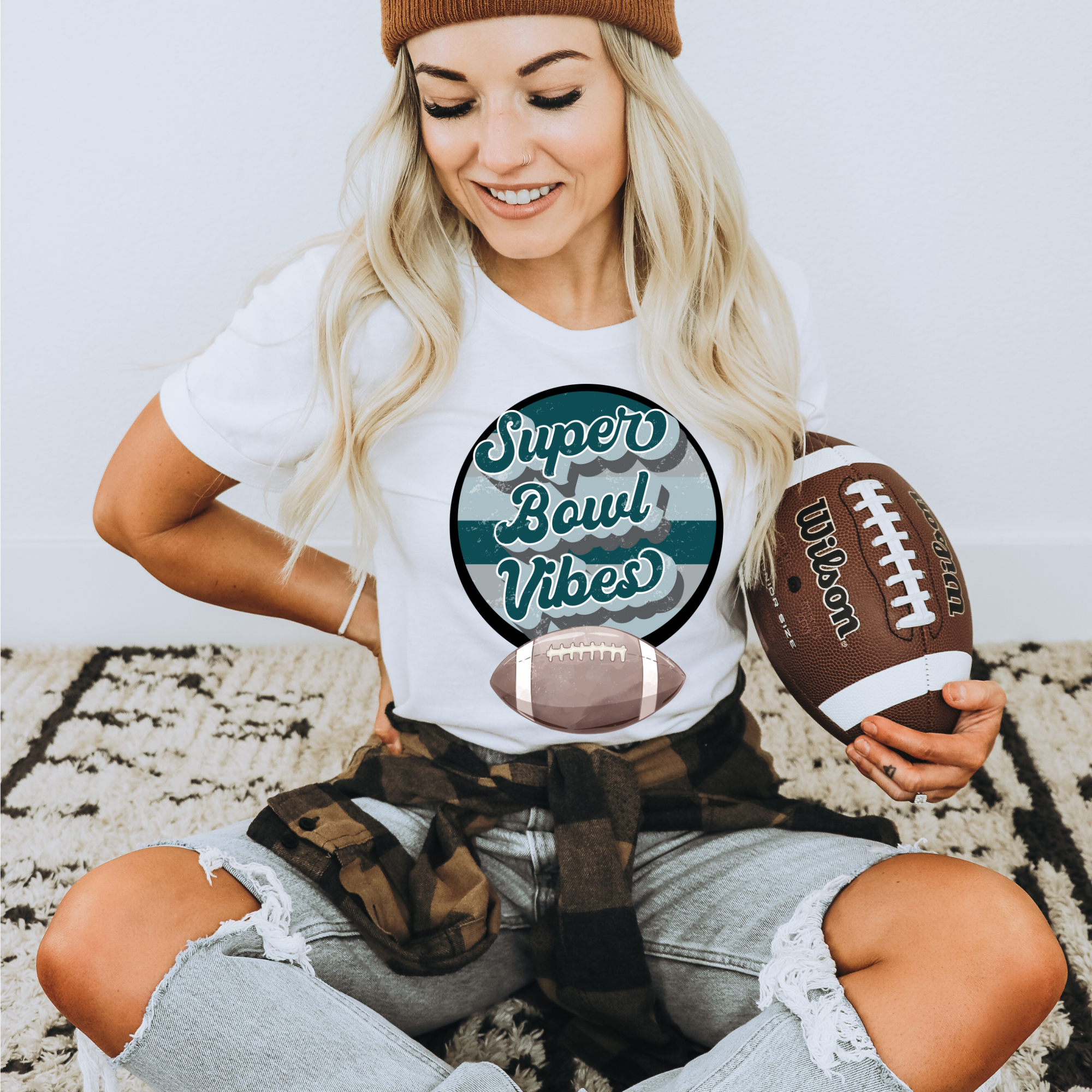 Eagles Super Bowl Vibes Graphic Tee from Broadway & Arthur Boutique in Enid, Oklahoma.