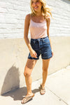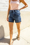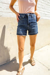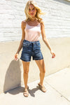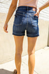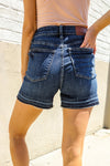 Judy Blue Dark Wash Released Hem Tummy Control Shorts from Broadway & Arthur Boutique.