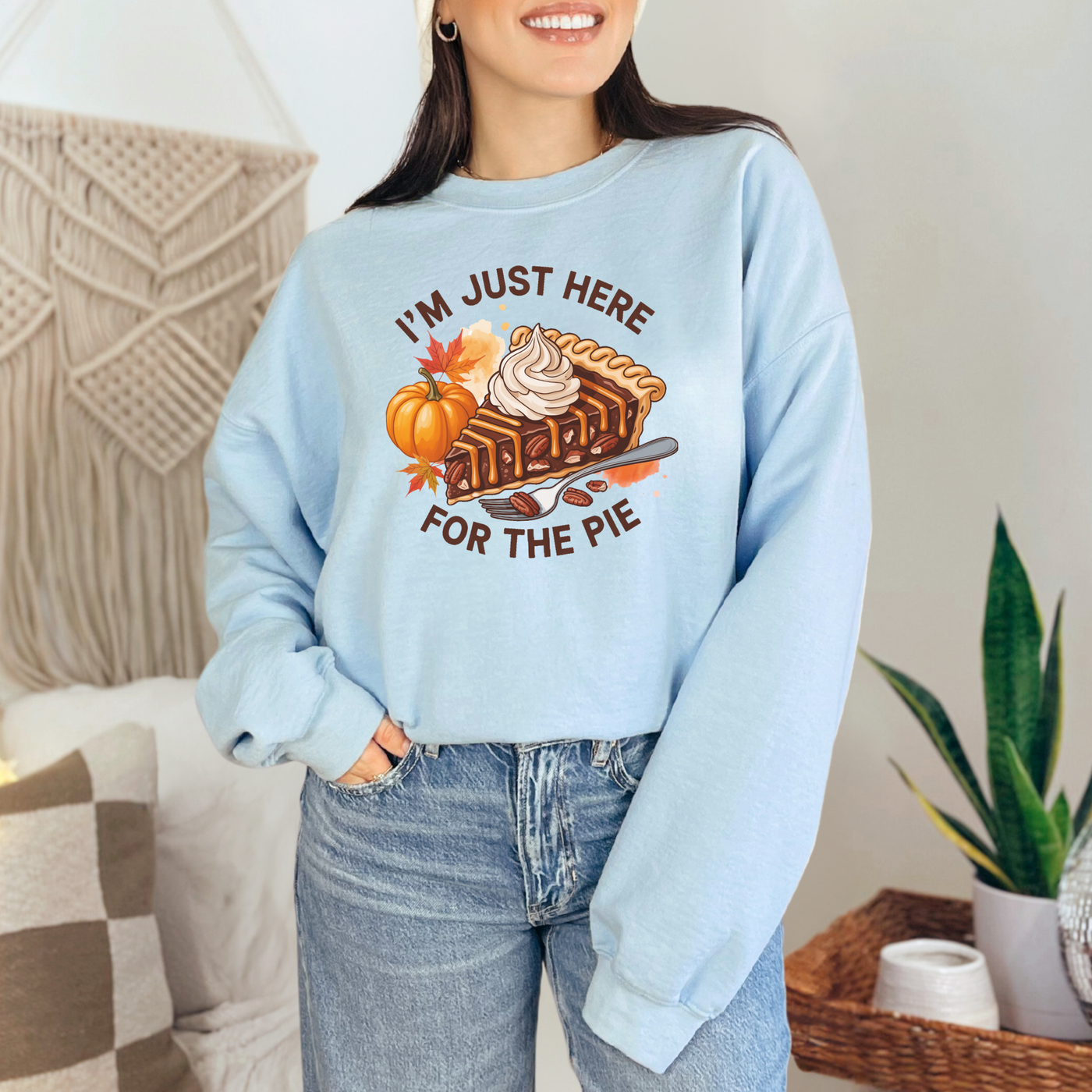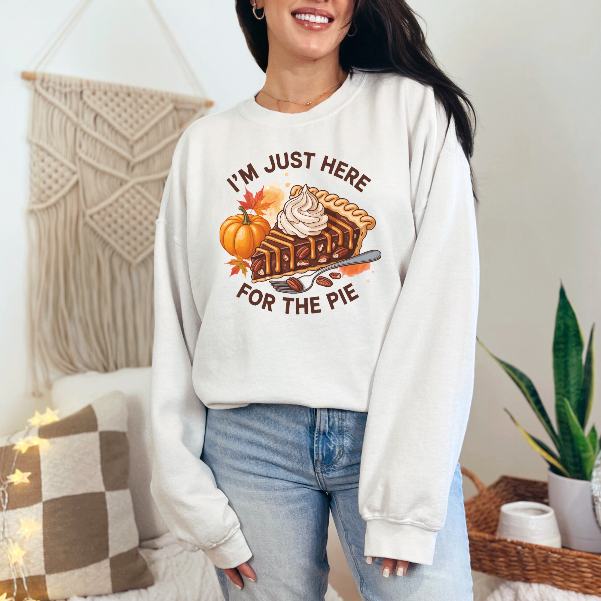 Serving up cozy vibes and sweet laughs! Our 'I’m Just Here for the Pie' sweatshirt is perfect for Thanksgiving, Friendsgiving, or any fall gathering. Soft, comfy, and ideal for those who come for the dessert and stay for the compliments.