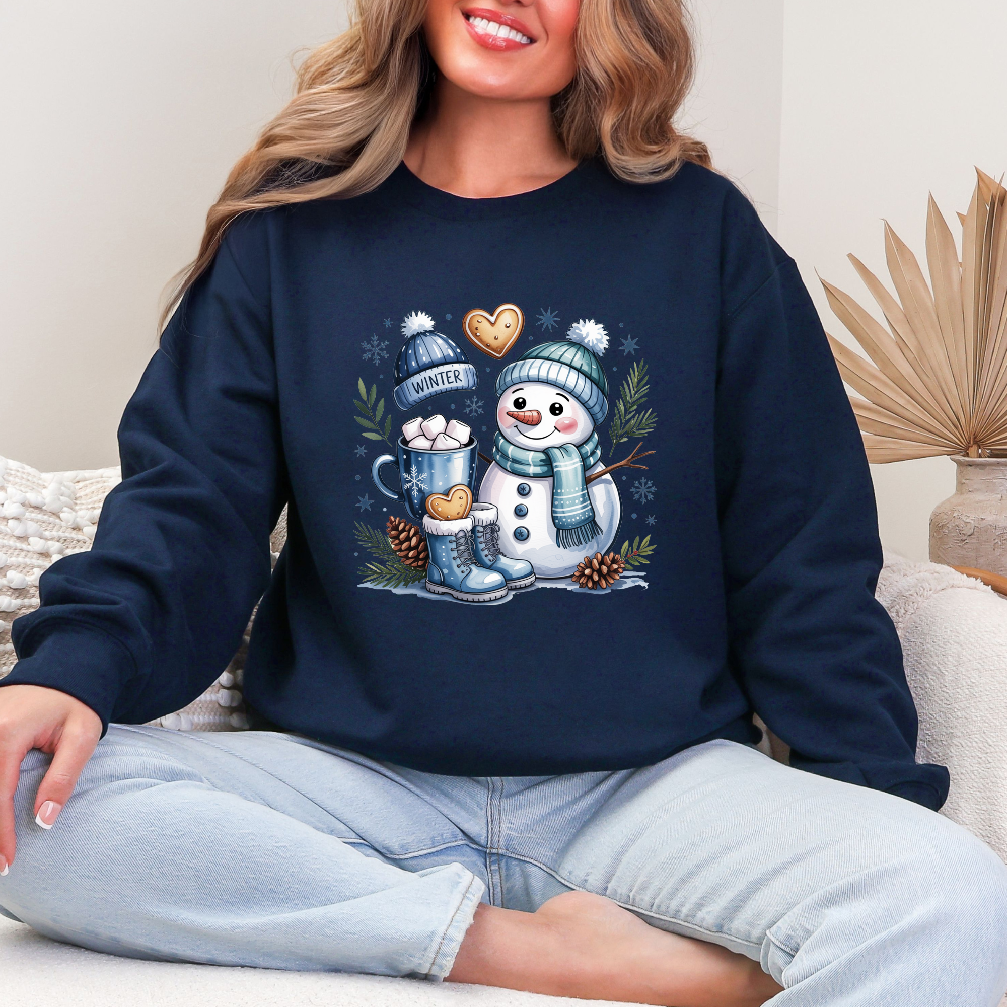 Stay warm and festive with this adorable snowman sweatshirt! Featuring a cute winter scene with cocoa, pinecones, and cozy details, it’s perfect for chilly days, holiday lounging, or a cute seasonal outfit.