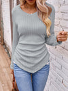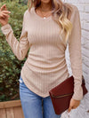 Textured Ruched V-Neck Long Sleeve T-Shirt from Broadway & Arthur Boutique in Enid, Oklahoma.
